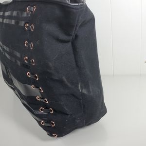 This high quality tote is made by Victoria's Secret. It features a subtle stripe with rose gold graments and embellished sides. It is approximately 17.5 inches wide by 12.5 inches high by 6 inches deep, strap has a 10 inch drop. It has no signs of wear or damage.