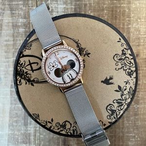 Silver and rose gold watch with vintage Minnie Mouse face and original case. Adjustable clasp. Item worn only a few times, great condition