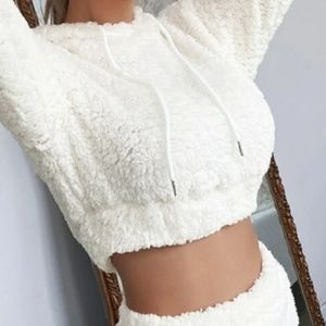 Crop Hoodie Off-White Teddy w/drawstring Xsmall-Small