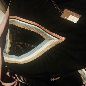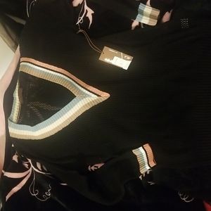 Nordstrom's KERISMA Rica Black Mesh Sheer Top. Earth Tones accent V-Neck
