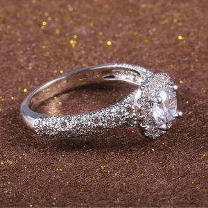 Elegant 925 Silver Round Cut Cubic Zirconia Ring