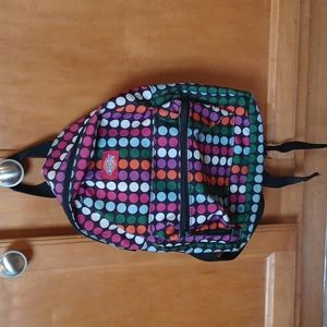 Super cute. Lightly used but in great condition except for some marks in the interior. Measures approximately 10" x 12". Front zipper pocket.