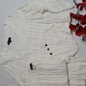 Unique White Linen Pant Suit Designer Asymmetrical Cut Women's Lauren Vidal L XL