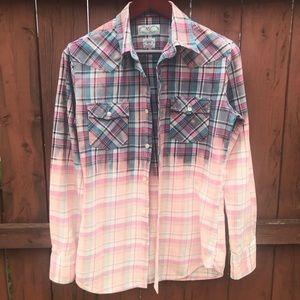 A man’s size small shirt upcycled by bleaching. Great to wear big and loose over a tank or tee. I am listing as a man’s small because technically that’s what the shirt is tagged! Note my measurements to assure a good fit!