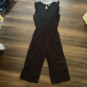 Ruffle sleeve polka dot pattern jumpsuit from old navy. Cross button back, tank top sleeves with ruffles. Cropped length pants. Has pockets. EUC