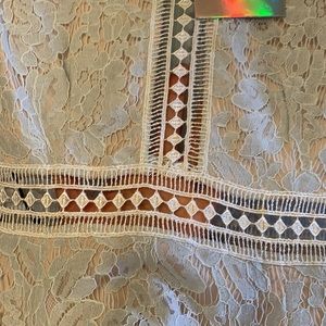 BNWT Sheer sleeves, mid waist and chest. Beautiful ice blue colour.