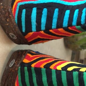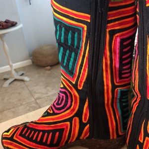 Just arrived. Kuna Molas. 8.5-9. Designed by me and tribal artisans. Light weight and great souls. Can be thrown in washing machine and I love when they are faded look which will happen to the orange especially over time and more if you like and put in sun. Throw in washing machine to clean or use a sponge. Zippers on inside. One photo shows the zippers on outside to show the boots, the zipper is only on this inside.... I am telling you, you will die when you put on they are so comfortable. I use mine for rain boots in FL, with socks in the Mountains, and wear with cut off's, solid color dresses and skirts, jeans of course also. Boho Tribal Heavenly. Support indigenous with your purchase. These are originals- most you see are are not. Please share. Thank you. Namaste.