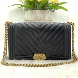 Chanel Black Medium Le Boy Bag Chevron