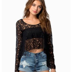 lightly worn, see through lace crop top, could fit small/medium/large, no rips or holes:)🖤♟