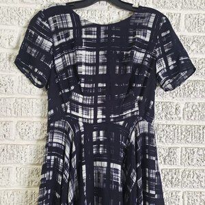 Anthropologie Corey Lynn Calter dress - Dark blue (almost black) and White painted plaid dress with handkerchief hem. Lined. Hidden zipper on the back. This is stunning!!