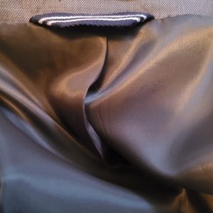 Light grey suit jacket with beautiful inner lining and pocket. Three buttons on the cuff of jacket sleeve. Side stitching in place with slits on the back of blazer. Pre-owned and in great condition. View pics please.