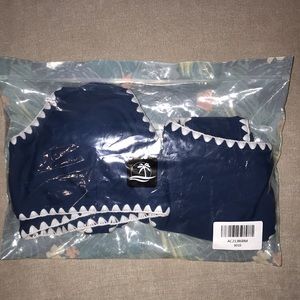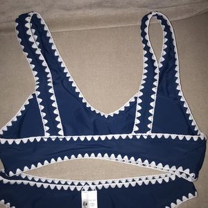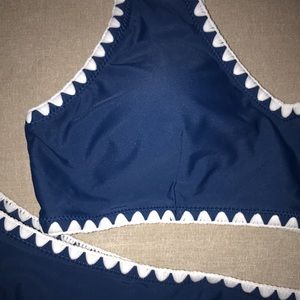 Beautiful dark blue with white stitching around the edges and padded cups.