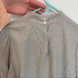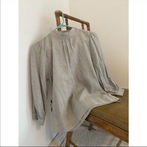 Super lightweight flannel blouse size 2 fits XS-S. Heathered grey, perfect for fall. EUC. Button-back mockneck with pleated puff sleeves.