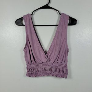 Urban Outfitters Women Purple Plunging Smocked Crop Top Sz M