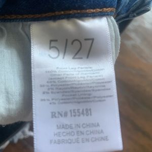 These jeans are in really good condition and were only worn once. They have rips on the knees, and on the bottom.