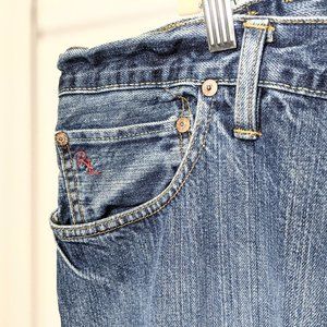 Polo Ralph Lauren 2012 867 Classic Fit Men's Slightly Distressed Jeans Size 46B. Style: R661D72 BIG/TAL Cut: 32924(A) BIG-M Sash: WARREN FOA Date: 12/12 Made of cotton in Mexico.