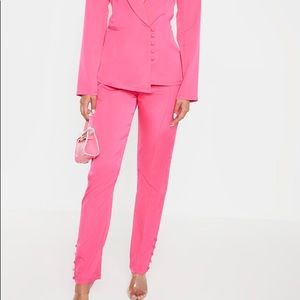 PRETTYLITTLETHING Hot Pink Woven Button Cuff Detail Skinny Pants. LENGTH approx 74cm/29". MATERIAL 100% Polyester. SIZE 0USA (4UK). WORN ONCE.