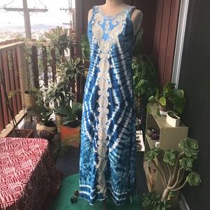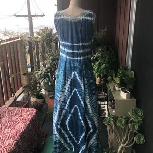 Indigo Shibori Tie Dye Dress Gown 6 8 M Vintage