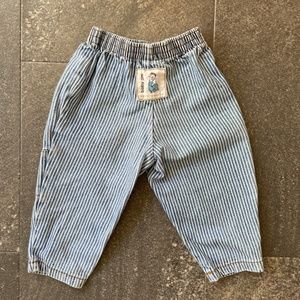 Adorable blue and white pin striped denim jeans from the 80’s. Tag says 6 months, but will definitely fit until 12 months.