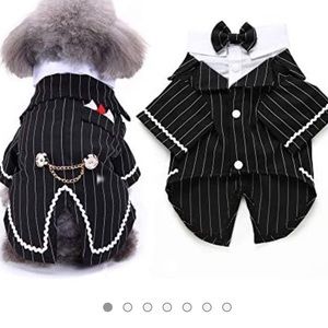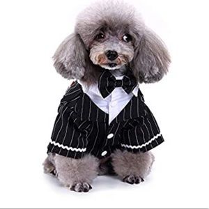 Clothes,Pet Suit Bow Tie Costume, Cat Wedding Shirt Formal Tuxedo with Black Tie, Dog Prince Wedding Bow Tie Suit/ Small