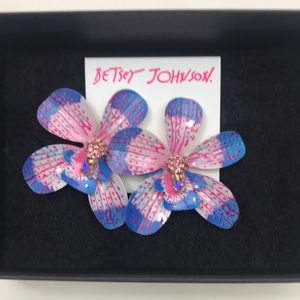 These earrings are just stunning. Blue and pink painted on gold w jewels at center of each flower. These are larger, measuring about 2” around. Sooo pretty and New in box