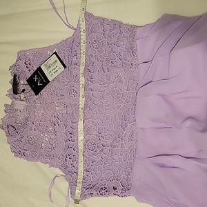 New with tags. High neck crochet maxi dress in light purple. Lilac chiffon style skirt. Custom designed crochet lace.