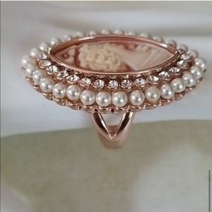 Amedeo "Giulietta" Cameo Pearl Crystal Ring SZ 7