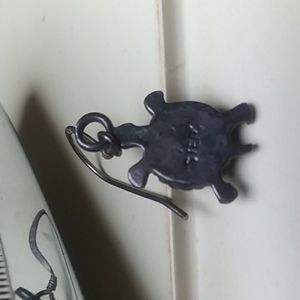 Cute dangling earrings in shape of a turtle with a round coral shell. Stamped Ster and 925.