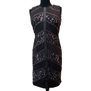 Calvin Klein Mix Media Sheath Black/Nude Dress 6 Women's party dress