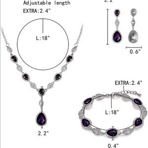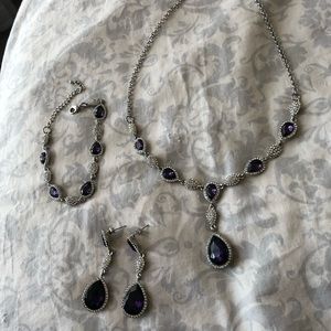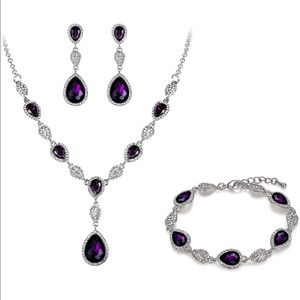 Only worn once! Amethyst color jewelry set with teardrop necklace, tennis bracelet and earrings. Cubic zirconia. Perfect for bridal, bridesmaid, prom, special occasion perfect condition. Includes extra clasps comes in original box