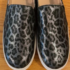 Kate Spade size 10 black & silver leopard print slip on sneakers. These sneakers have only been worn once! Like new!