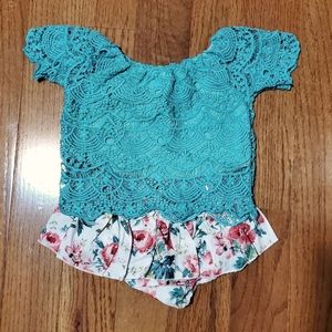 Ruffle shorts with lace top new