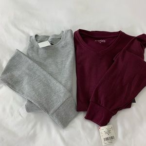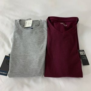 2 men’s sweatshirts. Waffle cut. Banding at neck and cuffs. 60% cotton; 40% polyester.