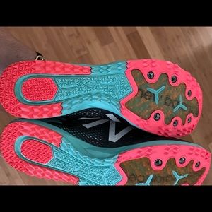 Teal/orange/black raicing shoes.