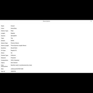 Dusty Blue Polyester Solid Keyhole Back Flounce 3/4 Length Sleeve Blouse Round Neck Regular Fit Pullover Non-Stretch