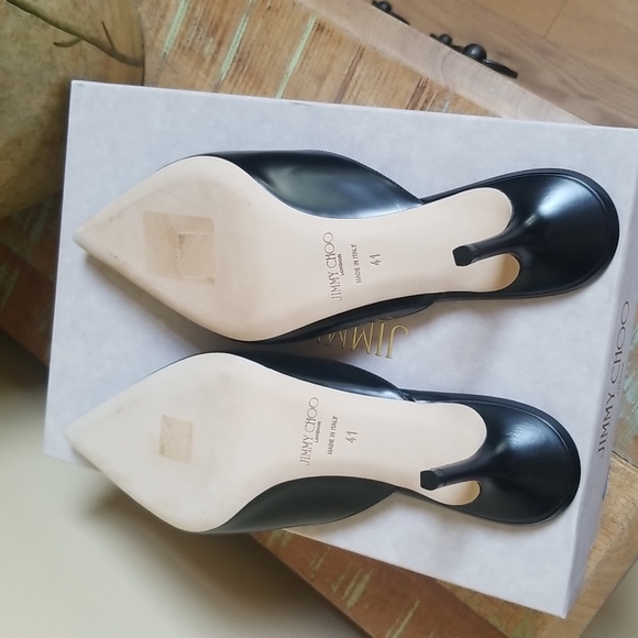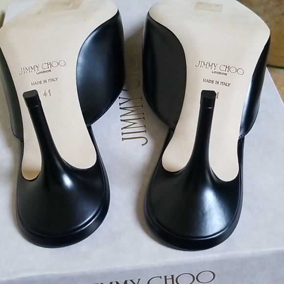 A NWOT size 41 Pair of Black Liquid Leather Rav 65 Mules by Jimmy Choo.. never worn.. 3" heel.. original box and dust bag included.. these are 100% authentic and are from my personal collection..