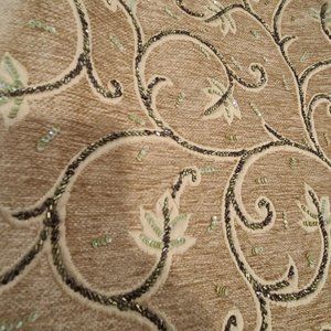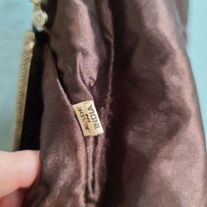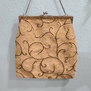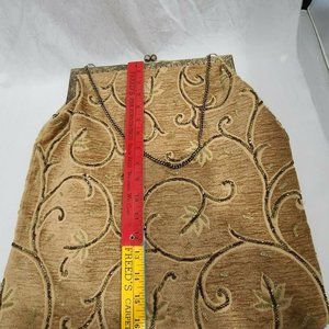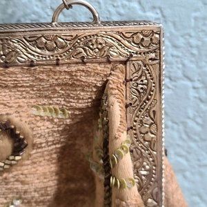 Christiana Beaded Purse Handbag Satchel Large Vintage Beige Green Brown India. All beads and Sequins look to be in tact the inside is fully lined and clean has an inside zipper pocket made in India tag measures 16" tall and 17" wide has a decorative metal closure with some tarnish at the close see pictures