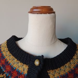 ▪︎ Details: Black knit wool, vibrant earthy coloured details, hearts, floral, detailed green buttons
