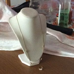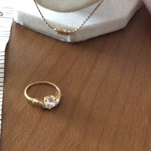The ring fits size 5, snugly, with cubic zirconia stone. Both pieces EUC. Necklace is 24 inches long.