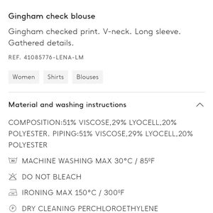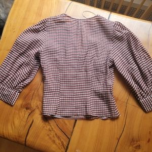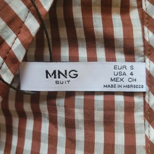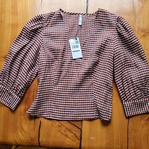 New with tags Mango Gingham burnt sienna, gray, and white check blouse, with long 3/4 length sleeves. Gather details, zippers at side. Size Small