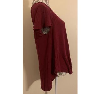 It is in pretty good condition. It is a loose fit, the graphics do have some wear from use and from being washed. It is comfortable and perfect for any occasion. No rips or tears.