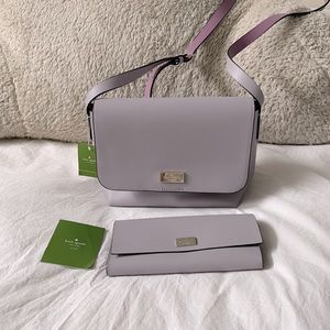 Brand New & Un-used authentic Kate Spade purse and matching wallet set. 2 toned purple. Never worn with tags still on them. Slight imperfection on top of bag. Photo provided