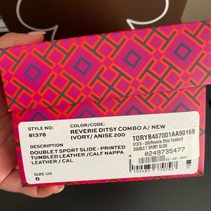 Bought from ShopBop earlier over the summer. Comfy slides. Size 8 and tts. Soft padded insole with signature Tory Burch logo stitched on sandals. Box with dust bag (unused) included.