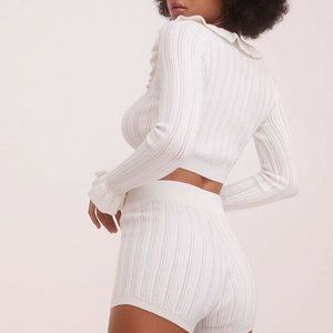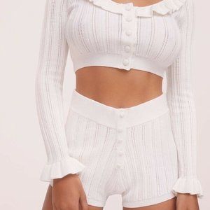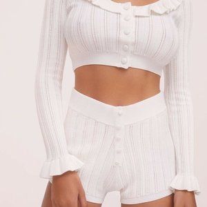 For Love & Lemons L NWT 2 Piece Camille Set Pointelle Knit Shorts & Cardigan Top
