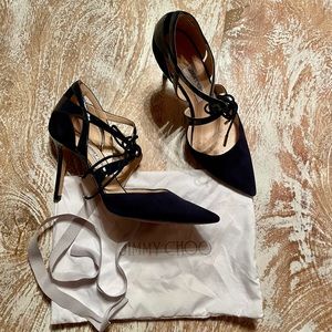 Jimmy Choo’s point-toe ‘Vanessa’ pumps will make a timeless edition to any wardrobe – they look so chic with jeans and dresses. Made in Italy from navy suede and leather, this pair is detailed with front ties and flattering cutouts that beautifully frame the foot.