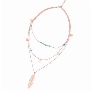 Brand new Boutique item New Chic Stacked Layered Feather Necklace Goldtone
