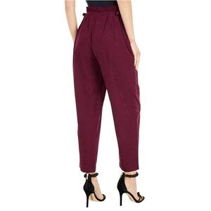 Brand new with tags never been worn before. Bought these for a summer concert but ended up going with a dress. These relaxed, straight leg trousers feature a flattering paperbag waist convenient dual side pockets, and a lush deep wine hue. Cropped at the ankles for an unfussy but put-together silhouette. The paperbag waist pants feature a high-rise and tapered-leg that stops short at the ankle. Pull-on construction with a zip up the side and self-tie in the front & the sides. Soft Suede-like feel made of 90% polyester 10% nylon Dry clean. inseam 25.5inches