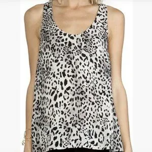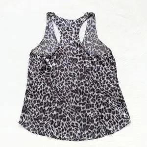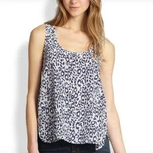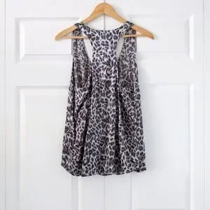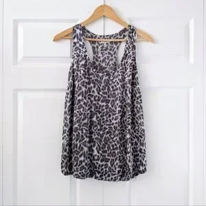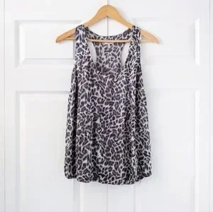 Joie Leopard Print Gray Silk Racerback Tank Top