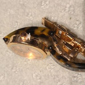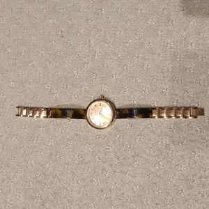 Laura Ashley Rose Gold Leopard Print Skinny Watch