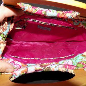 VERA BRADLEY WOODEN HANDLED SILK QUILTED PURSE EUC